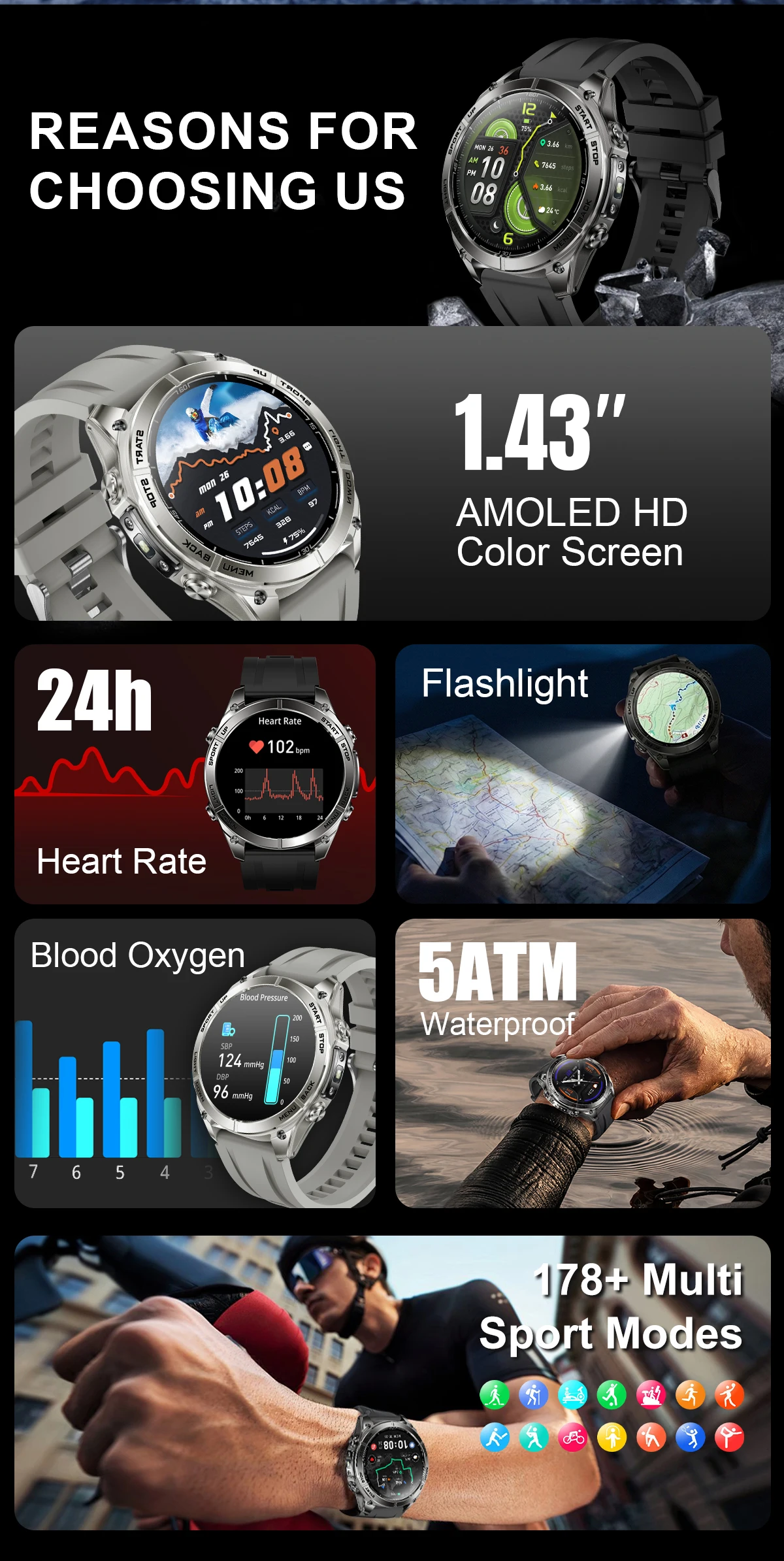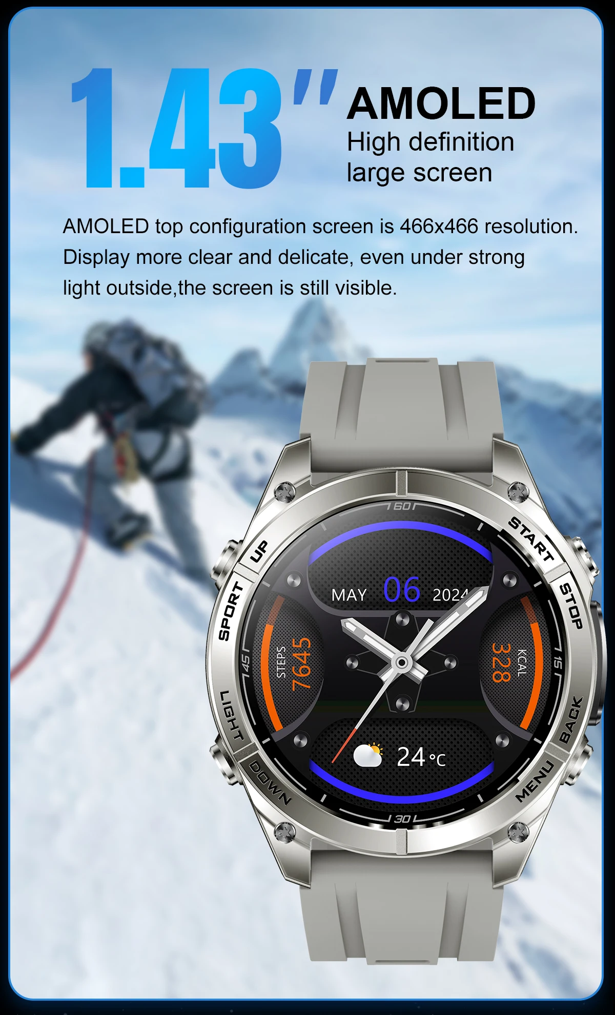 Velix Explorer GPS Smartwatch with Flashlight 1.43inch Amoled 5ATM Waterproof Barometer Altitude Sports Smart Watch 2026